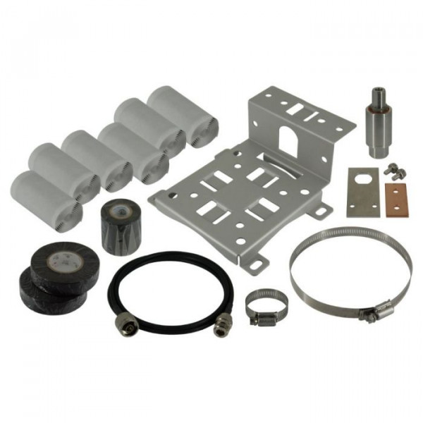 Kit de accesorios IP67 con soporte de montaje, cable coaxial de 5' tipo N, clavijas/toma de corriente, pararrayos IP67, kit adaptador de cinta de toma de tierra y kit de protección contra la intemperie