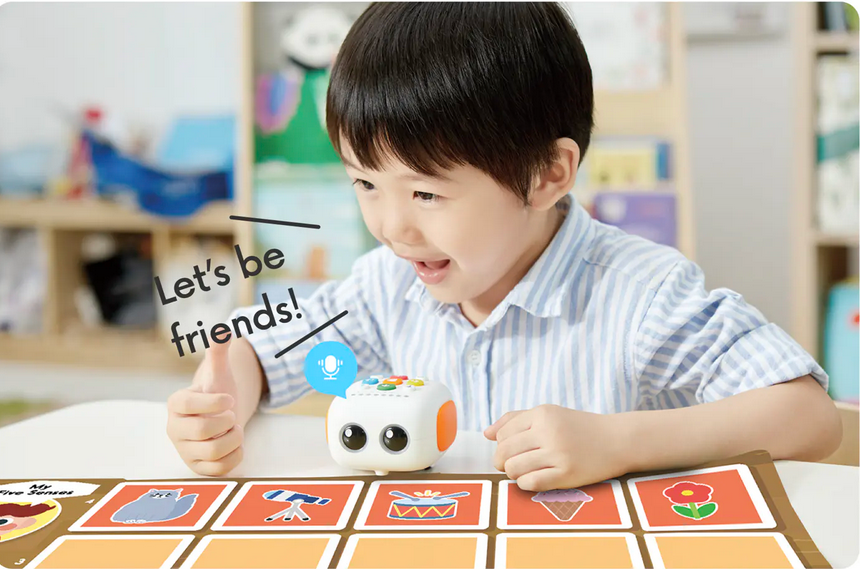 Presentamos Tale-Bot Pro: el robot inteligente más avanzado! Con una colorida gama de botones de control en la parte superior, puedes manejar el robot para que camine, dibuje, cante, baile, hable e incluso grabe audio! Con un mapa interactivo que proporciona una experiencia de aprendizaje sin límites, este robot está equipado para hablar diferentes idiomas y ofrecer un entorno interactivo para los entusiastas de la codificación. Tale-Bot Pro está diseñado para llevar a cabo tus ideas más creativas gracias a su capacidad para introducir hasta 256 comandos y grabar hasta 30 segundos por archivo de audio. El robot también viene con rotuladores lavables para dibujar formas y tres juegos de accesorios, compatibles con los bloques de Lego. Es perfecto para enseñar comandos, secuencias y bucles, convirtiendo el aprendizaje en una experiencia entretenida.